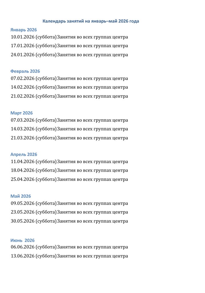 Календарь занятий на 2025/26 учебный год.